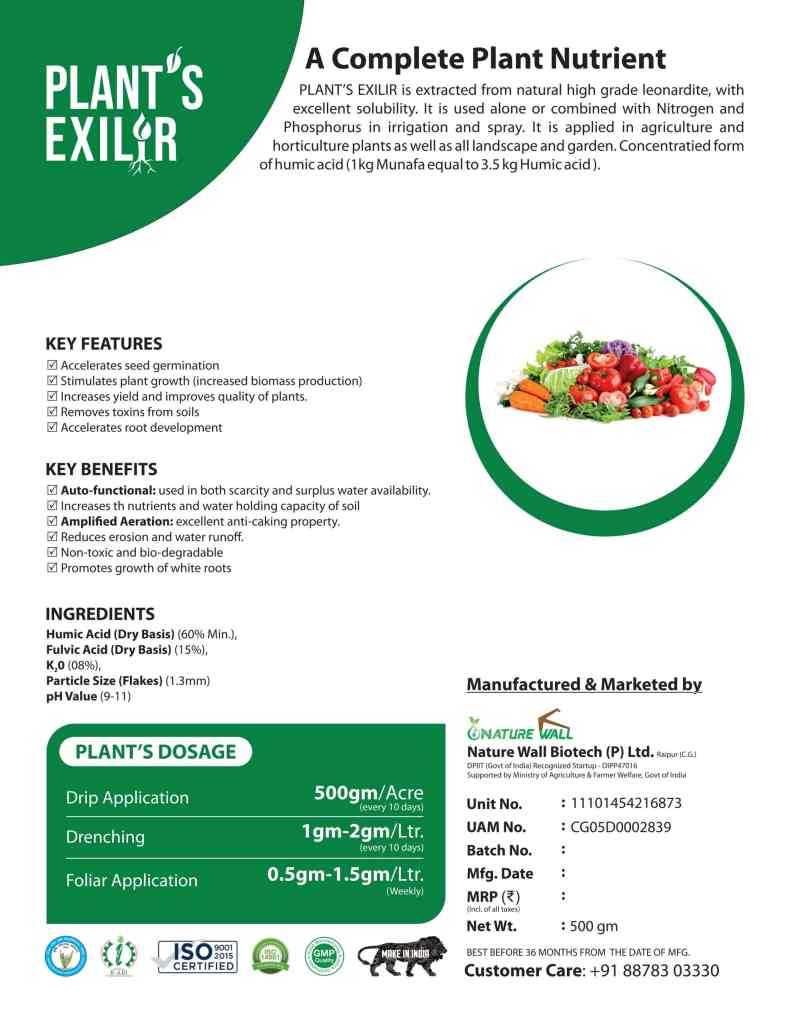 PLANT’S EXI LIR” उपयोग से लाभ :-